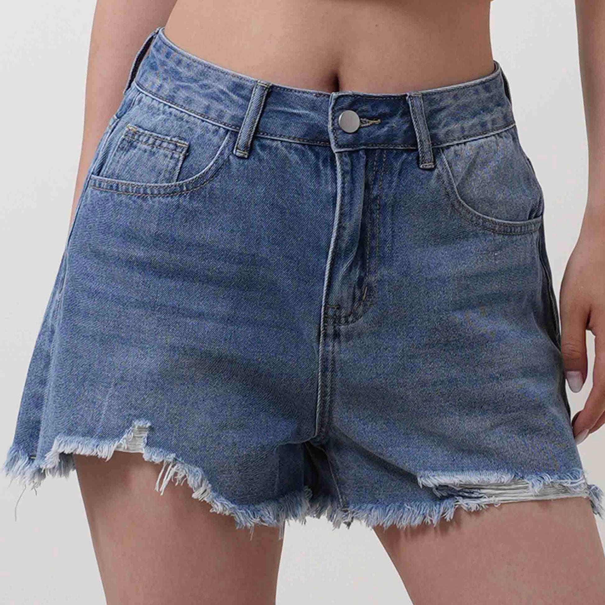Women's Distressed Denim Shorts - Classic 5-Pocket Style with Button & Zip Closure Cherie Code