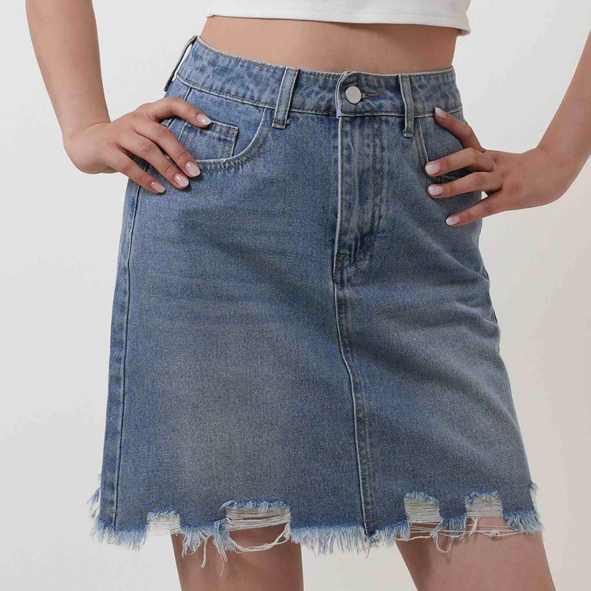 Women's Tailored Pencil Skirt - Cotton/Polyester Blend with Button & Zip Closure Cherie Code