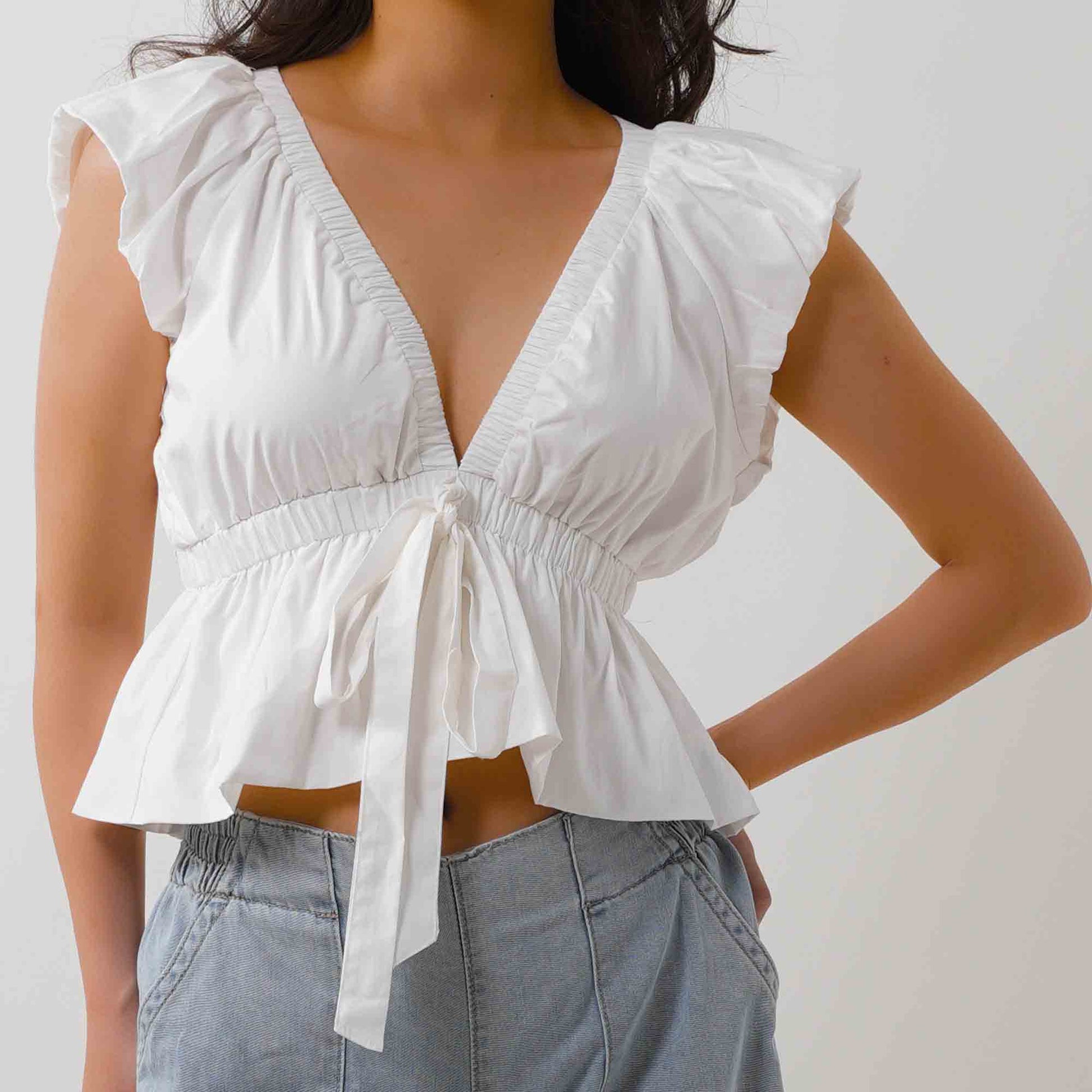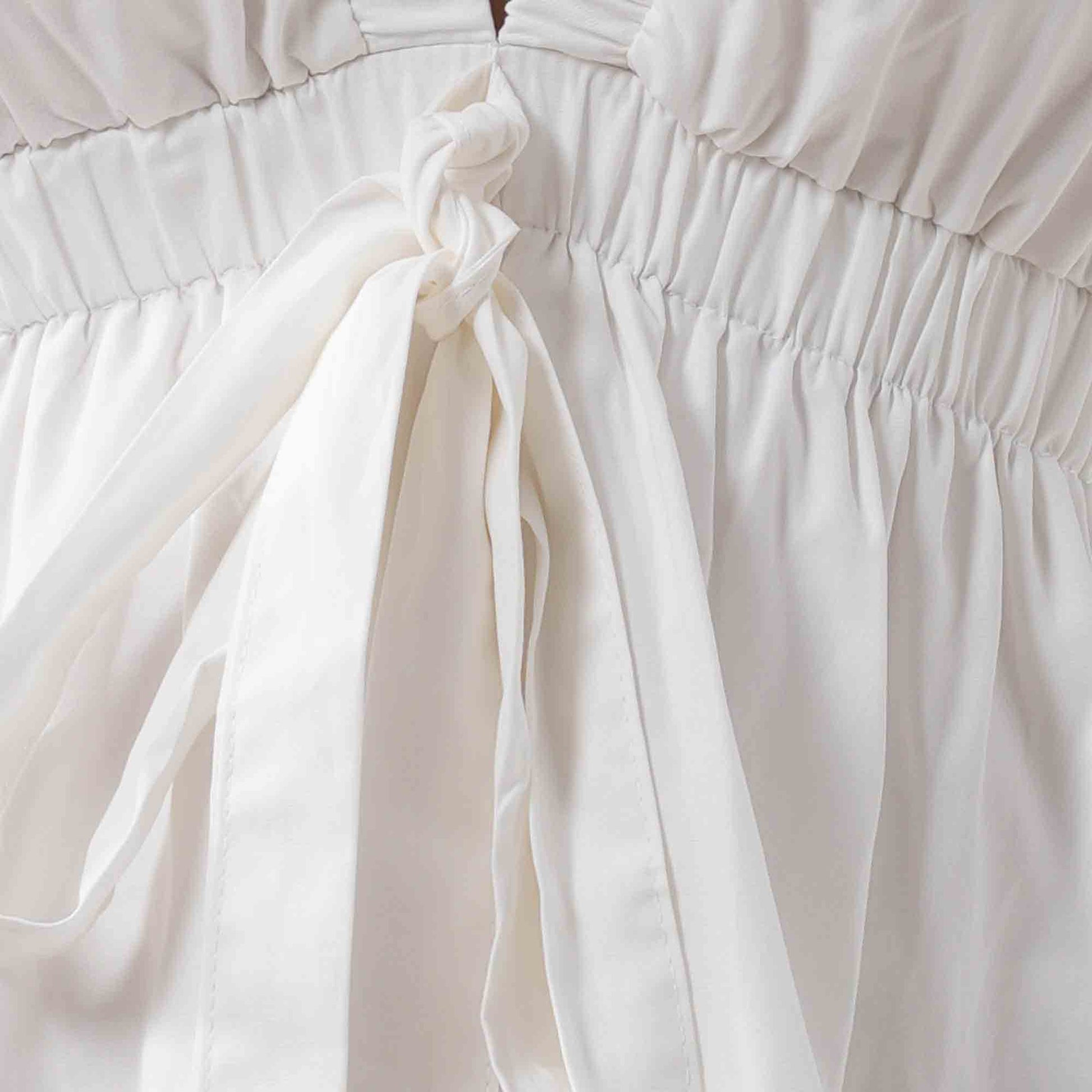 Elevate your casual wardrobe with this 100% cotton sleeveless top. featuring a flattering V-neckline and adjustable waist strap with bow tie detail. The elastic waistband ensures a comfortable fit while the 100% polyester lining provides smooth coverage.