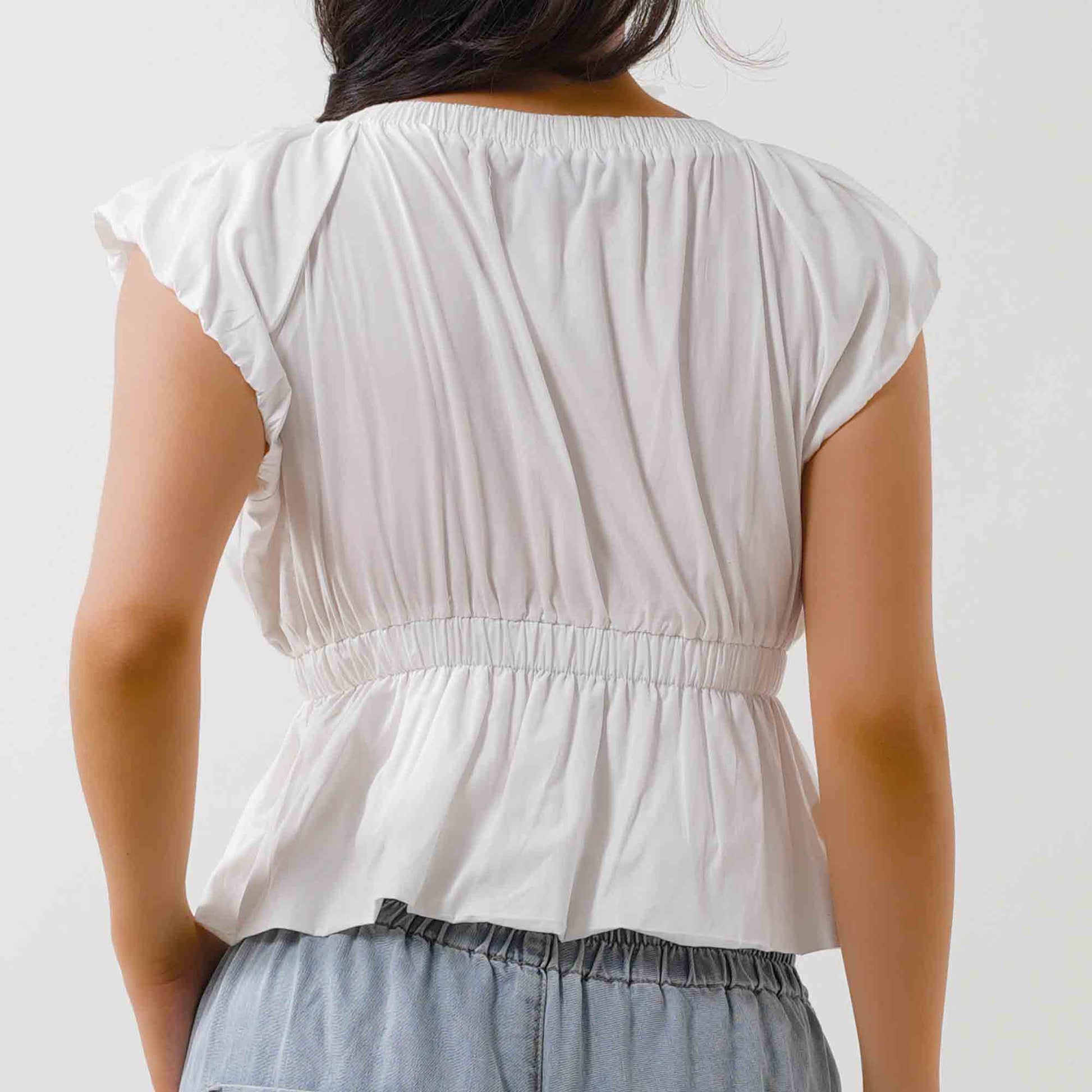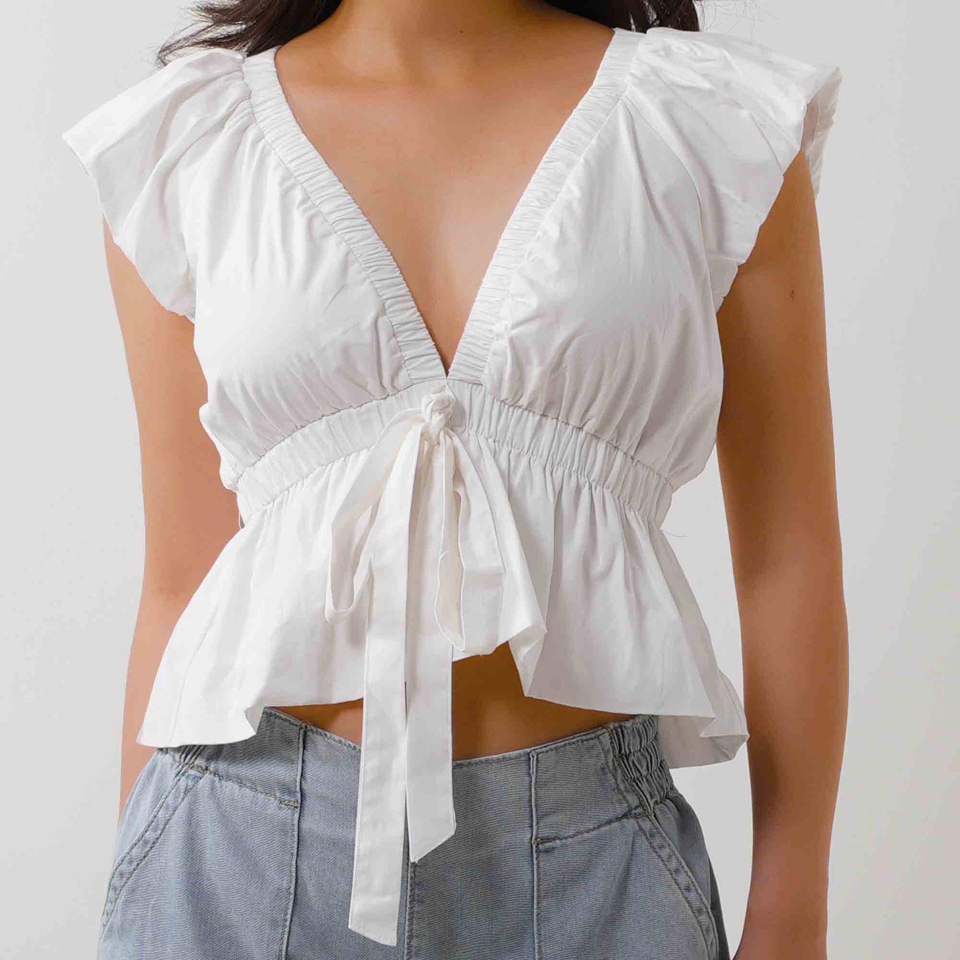 Women's V-Neck Sleeveless Top - Cotton with Bow Tie Waist Detail & Elastic Waistband Cherie Code