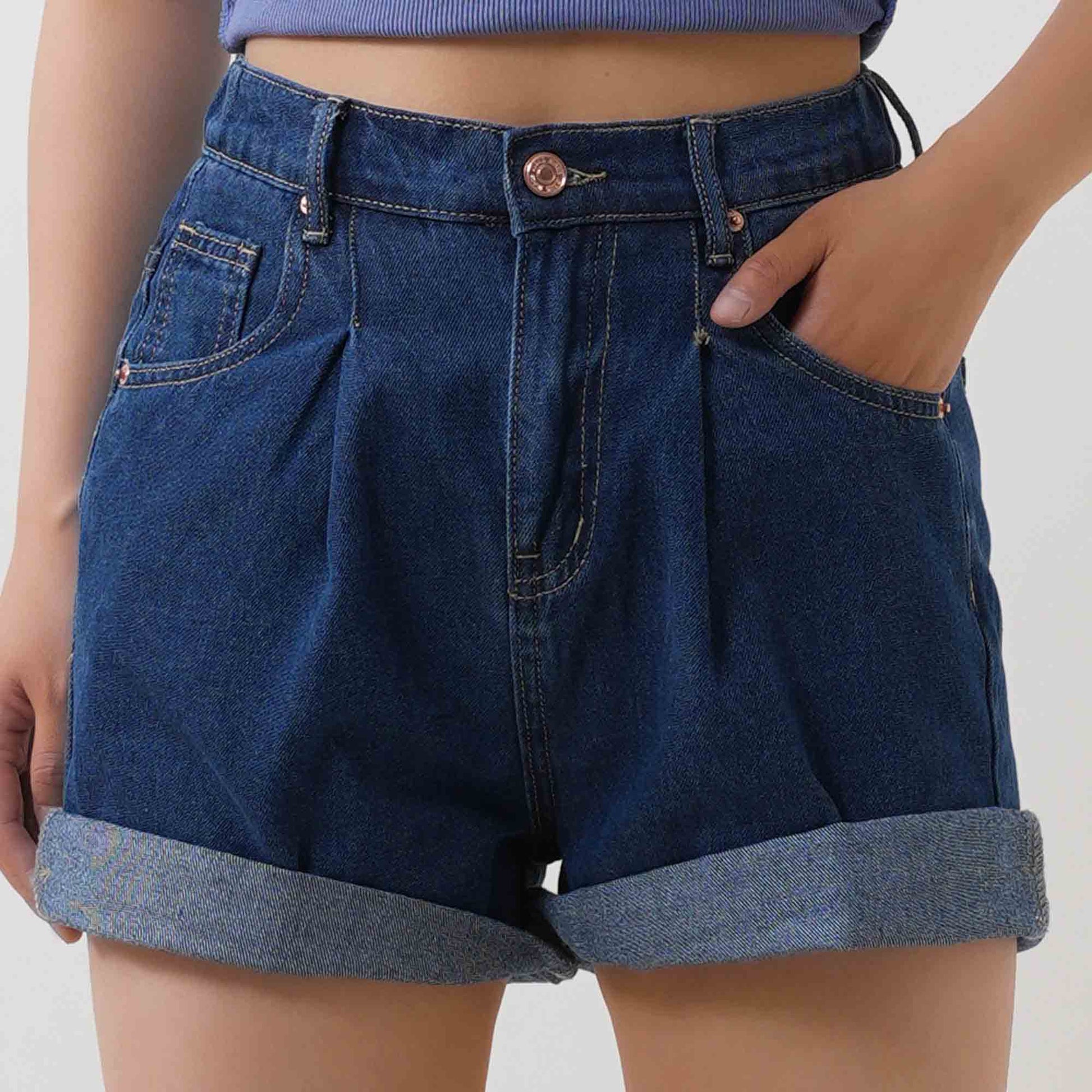 Channel vintage summer vibes with these comfortable wide leg denim shorts. featuring a unique half-elastic waistband for easy wear. Made from a durable polyester/cotton blend. these non-stretch shorts offer a true retro fit that skims the body beautifully.